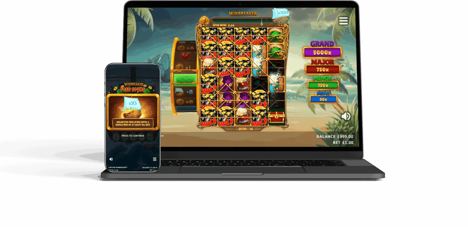 With Compass Wilds turning reels into full stacks of Wilds and the innovative Win Breaker™ Chase building higher and higher multipliers with no upper limit, the base game is always moving at full sail. Land Scatters to trigger Win Breaker™ Free Spins, where your collected Win Breaker™ value sets the ultimate prize target — and the reels keep spinning until it’s been hit. With treasure chests revealing jackpots, reel upgrades, and life-saving bonuses, players are always a heartbeat away from plunder worth 5,000x their bet.